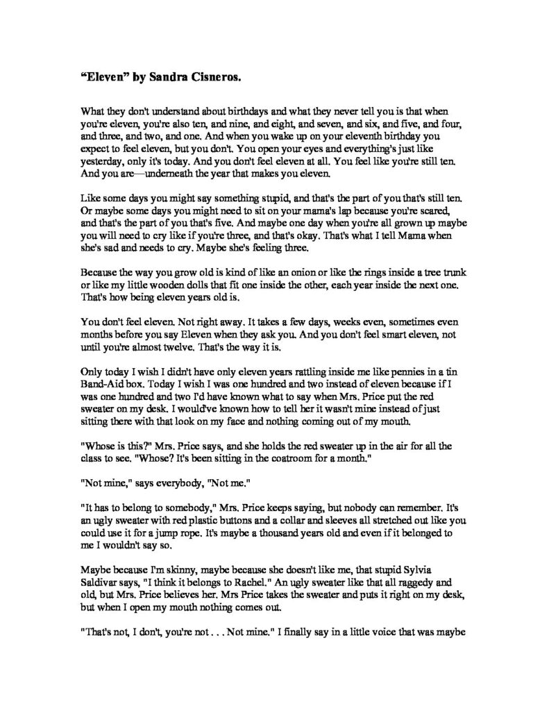 Eleven Sandra Cisneros