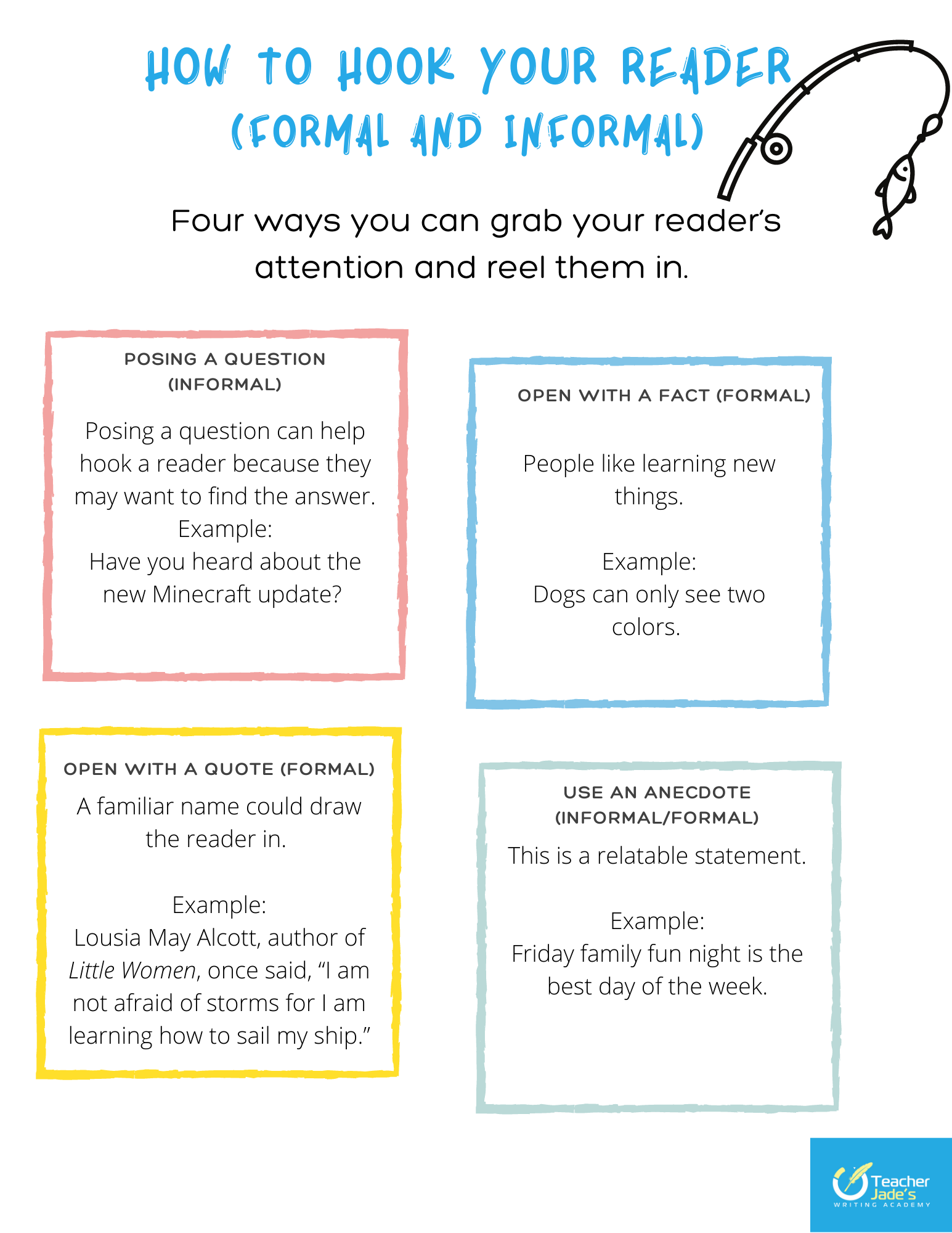 How To Hook Your Reader (Formal and informal) 2 Published May 25, 2023 at 1545 × 2000 in Parent Academy Next →