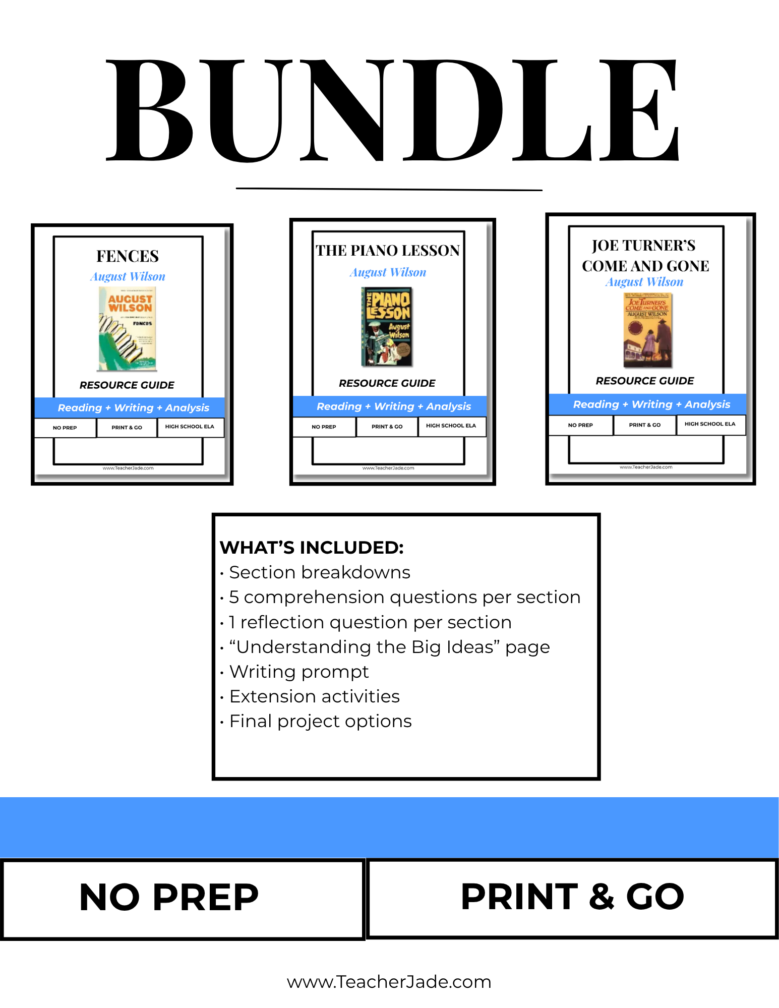 August Wilson Plays Bundle | Fences, The Piano Lesson, Joe Turner’s Come and Gone | Reading + Analysis + Writing