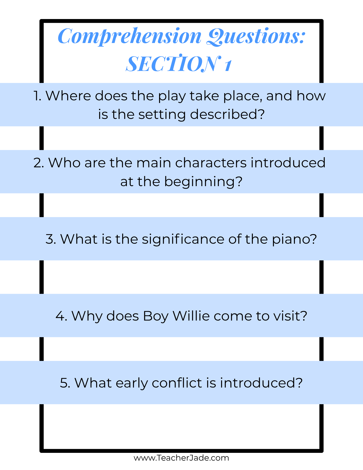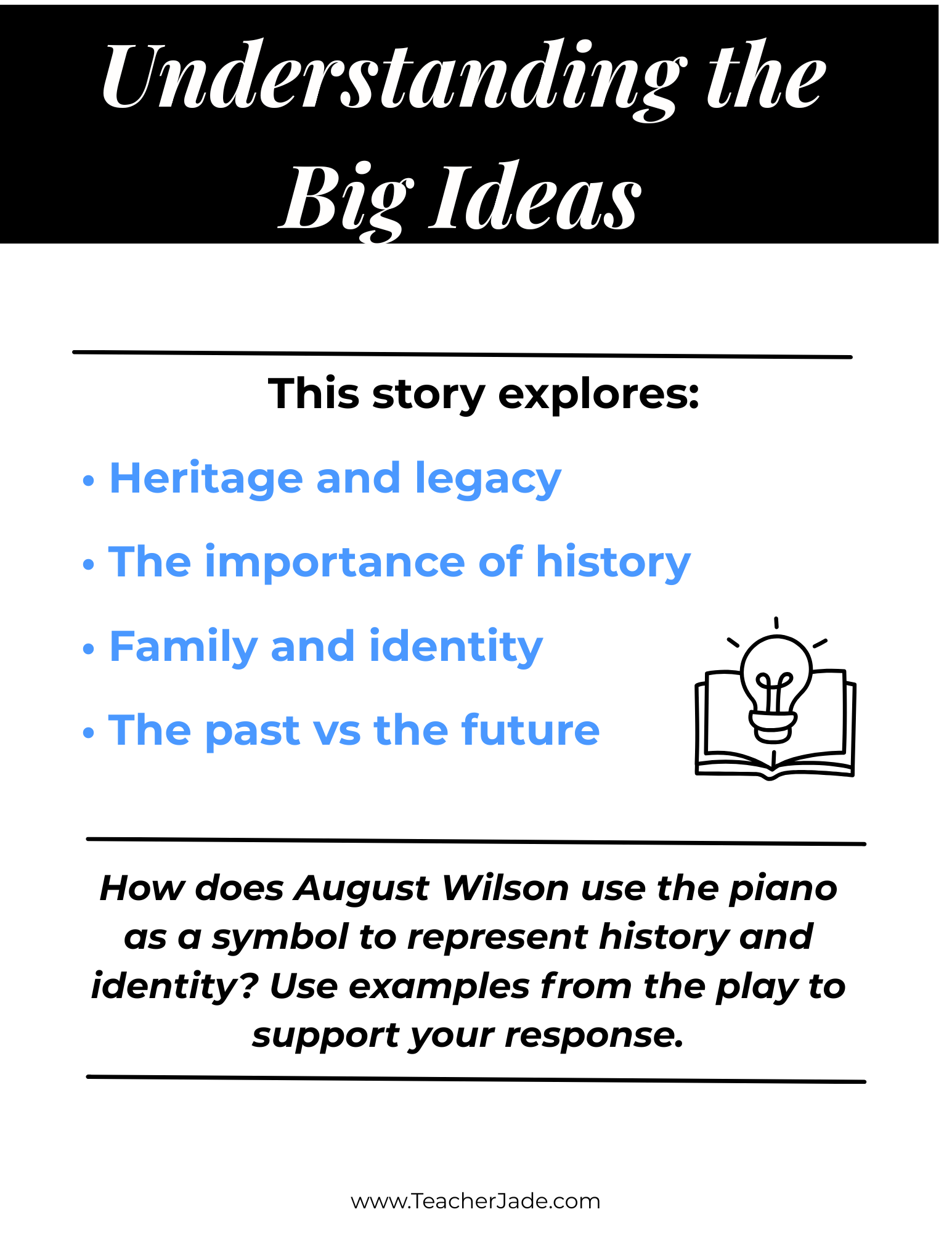 Teach identity, history, and family through this August Wilson Plays Bundle featuring Fences, The Piano Lesson, and Joe Turner’s Come and Gone. Includes structured questions, writing prompts, and activities.