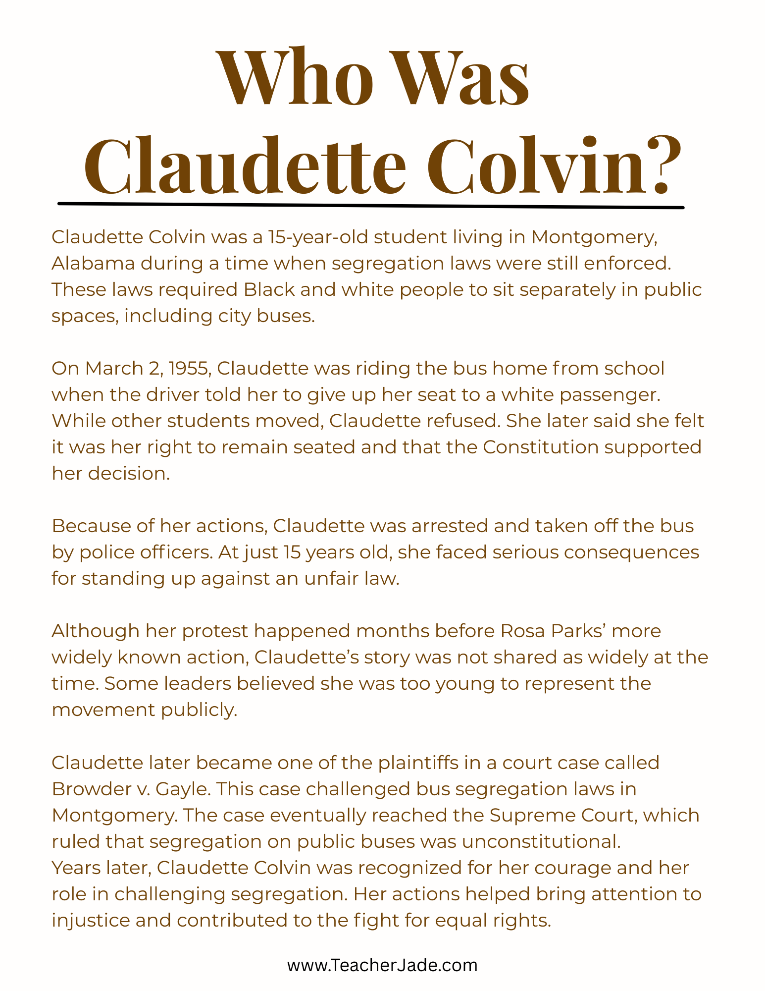 This no-prep Black History bundle features engaging nonfiction activities that highlight the impact of young people in the Civil Rights Movement. Students build reading, writing, and critical thinking skills through comprehension questions, writing prompts, and extension activities. Perfect for ELA, social studies integration, or homeschool learning.
