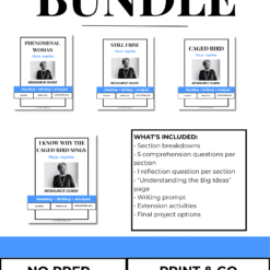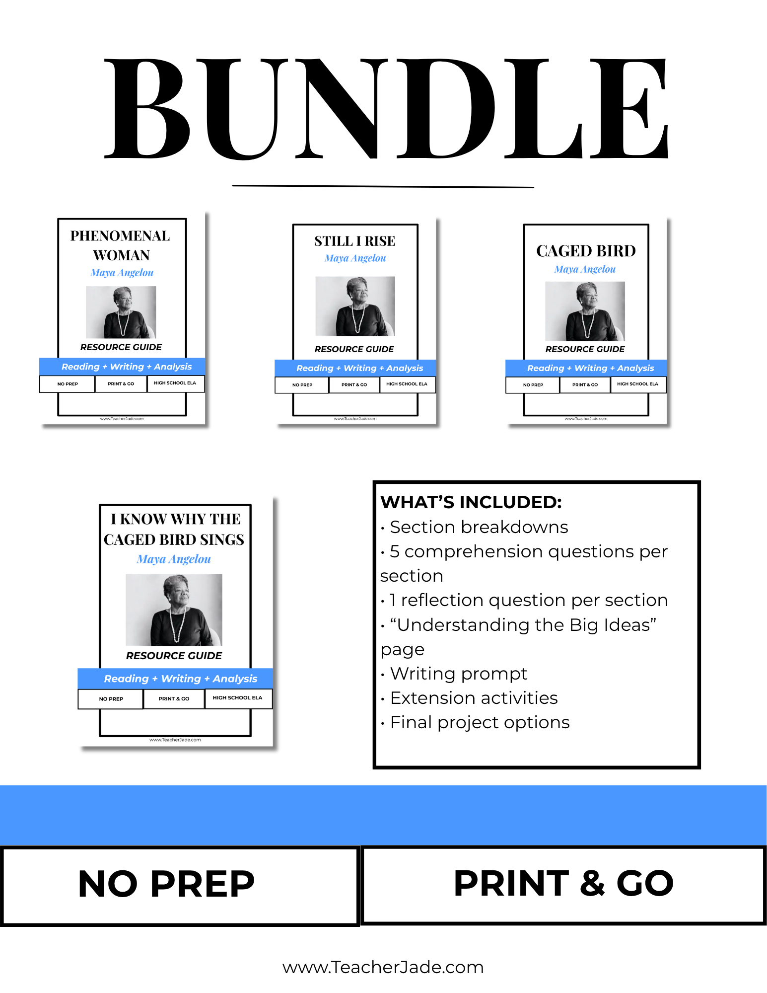 Explore identity, voice, and resilience with this Maya Angelou bundle featuring I Know Why the Caged Bird Sings and three powerful poems. Includes comprehension questions, writing prompts, and activities.