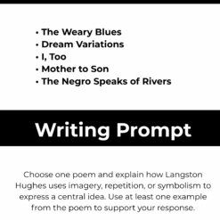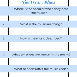 Engage students with this poetry unit based on The Weary Blues by Langston Hughes. While the full collection includes 68 poems, this resource focuses on five key selections and includes comprehension questions, writing prompts, and extension activities designed for middle and high school learners.
